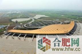 2013年5月29日24時,安全運行36年的合肥駱崗國際機場永久關閉。5月30日零點,合肥新橋國際機場正式啟用。新橋機場位于安徽省合肥市肥西縣高劉鎮,距合肥市中心31.8公里,是國內4E級樞紐干線機場,按照滿足2020年旅客吞吐量1100萬人次、貨郵吞吐量15萬噸的需要設計。跑道長3400米、寬45米;航站樓面積11萬平方米;站坪面積36萬平方米,共設機位27個,其中廊橋機位19個,遠機位8個。航站樓外觀呈現自然流暢的弧形整體造型,整個建筑地下一層,地上兩層,局部夾層;布局長804米,最大進深161米,屋脊最高點30米;屋面采用金黃色的直立鎖邊鋁鎂錳合金面板,規律設置19排屋面采光天窗。俯視整個建筑,宛若金色的展翅大鵬在江淮分水嶺上昂首欲飛,既是一張代表合肥形象的新“名片”,也是安徽又一標志性新景觀。4個值機島、84個值機柜臺在出港中央大廳兩側對稱布置,旅客進入出港大廳后,問詢服務臺、值機柜臺、22個自助值機終端、安檢通道一目了然;18個私密性很強的國內安檢通道居中,國際出港聯檢通道布置在西側,國內、國際各司其責;進入候機廳,19座呈“剪刀狀”的登機橋將登機口和到達口依次分成19個區域,出港、到港旅客各安其道,互不干擾;候機區4156個皮質座椅用顏色區分為19個區域,整齊明快,旅客候機時可享受餐飲、購物、休閑、觀影、免費無線上網等服務;整個航站樓有4條出發行李輸送線和7個到達提取轉盤、5套飛機泊位引導單元和廣播、時鐘及內通系統、航班信息集成系統、航班信息顯示系統等,涵蓋末端信息點位6000多個;17部扶梯和13部直梯,其中無障礙電梯10部,將航站樓的各個區域緊密聯系起來。